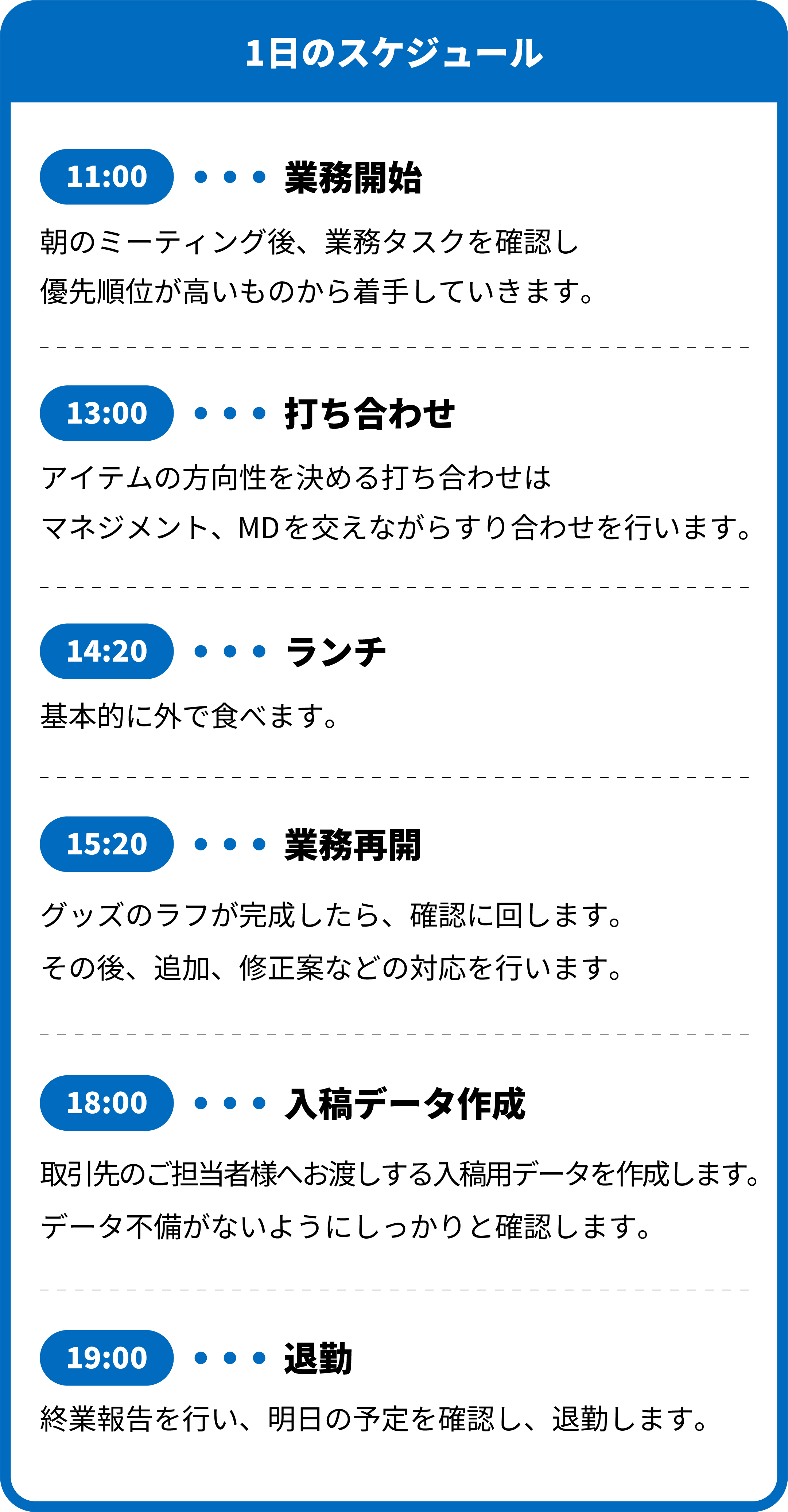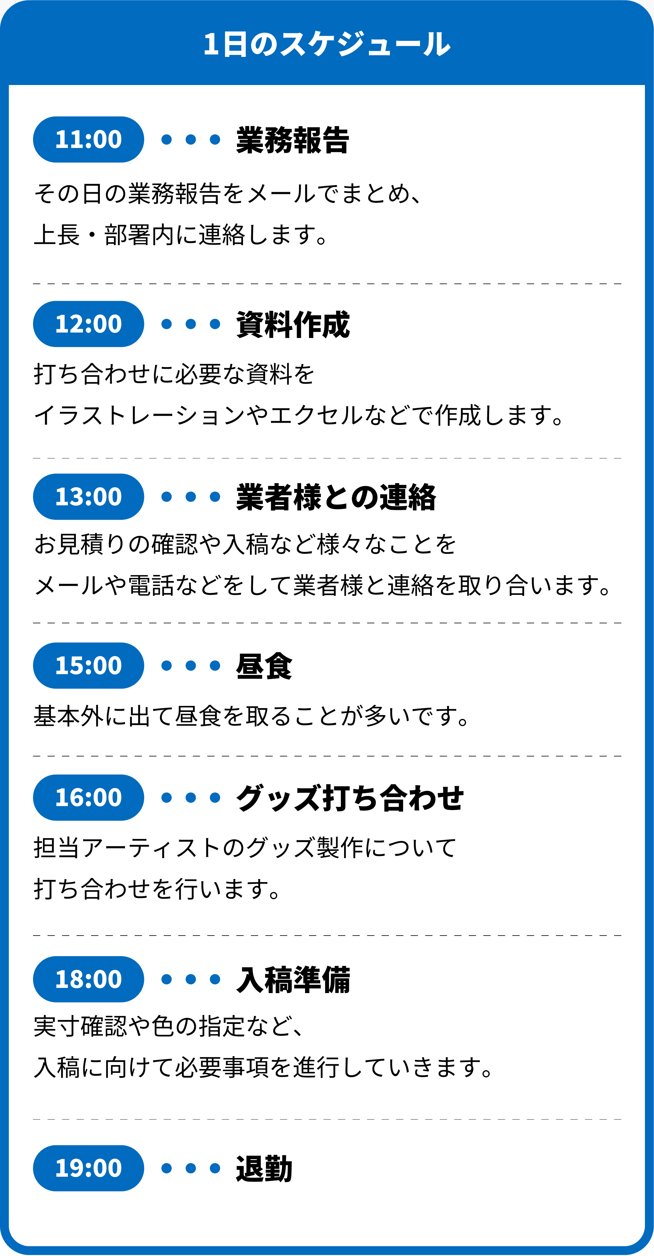 マネジメントだけでなく、グッズ製作やファンクラブ運営、デザインまでをひとつの会社で行っている事に興味を持ちました。